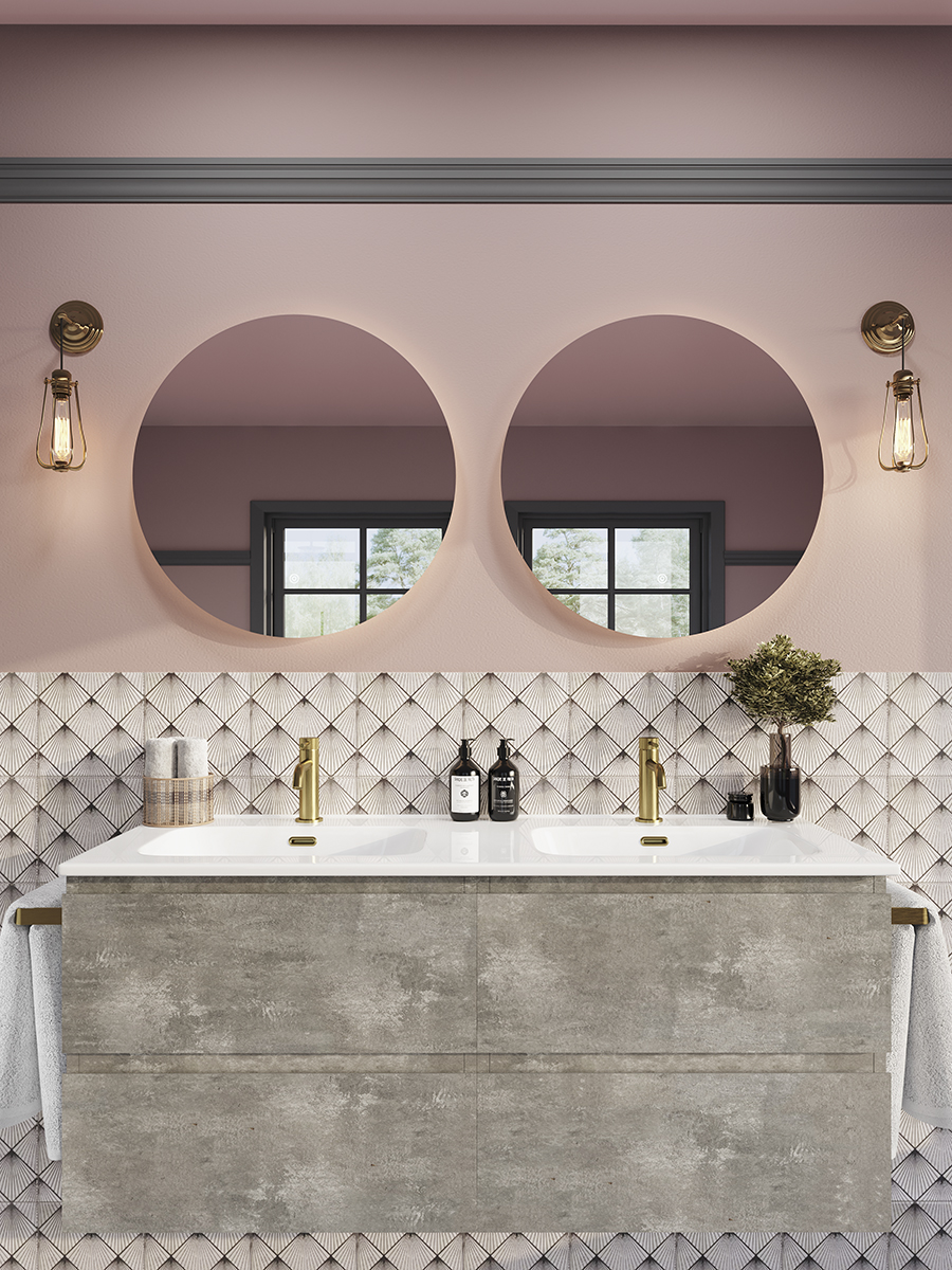 Finishes available: Gloss White, Washed Oak, Concrete Grey and Cavern Blue