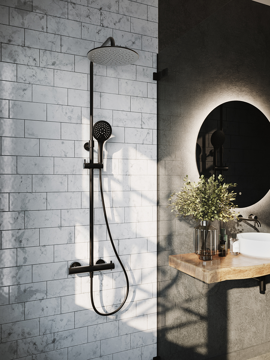 Rio exposed round 2 outlet thermostatic valve with rigid riser shower kit