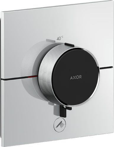 Select push button on/off control for 1 outlet, precise temperature control thanks to vertical handle structure and haptic feedback from the thermostatic mixer handle