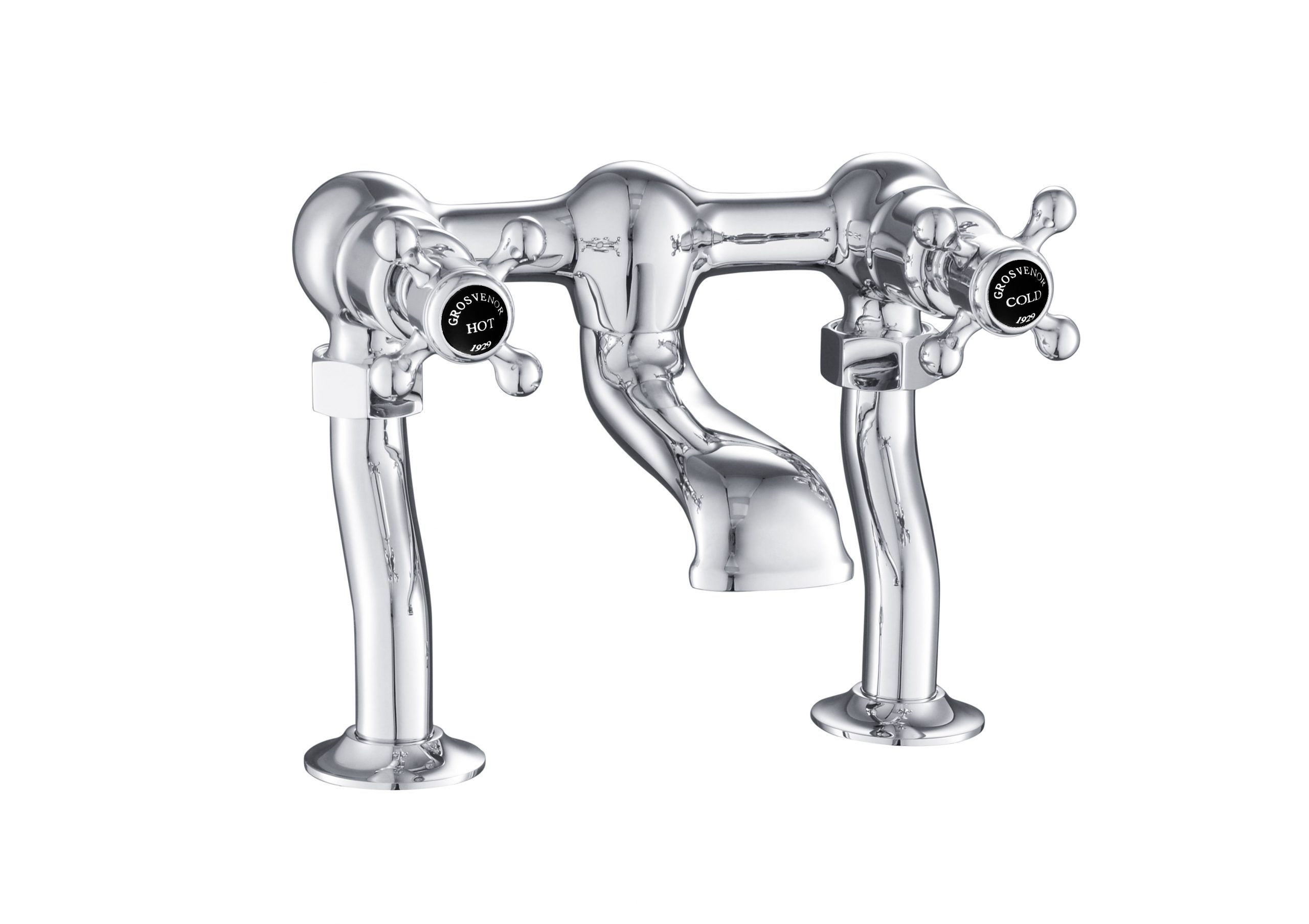 Grosvenor Cross Black Edition Deck Mounted Bath Filler – Chrome