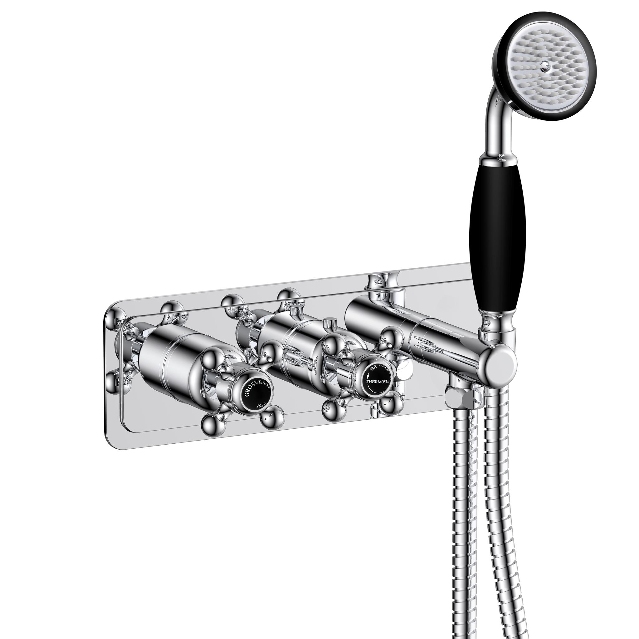 Grosvenor cross thermostatic concealed 2 outlet valve and handset